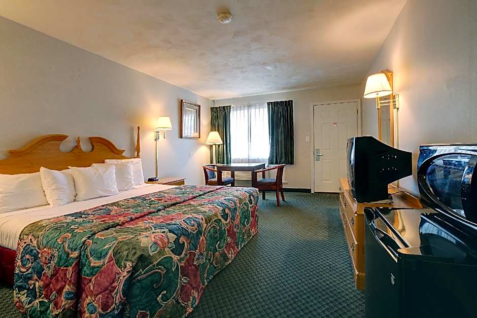 A seating area with a cable TV is featured in this room. A microwave and refrigerator are included.